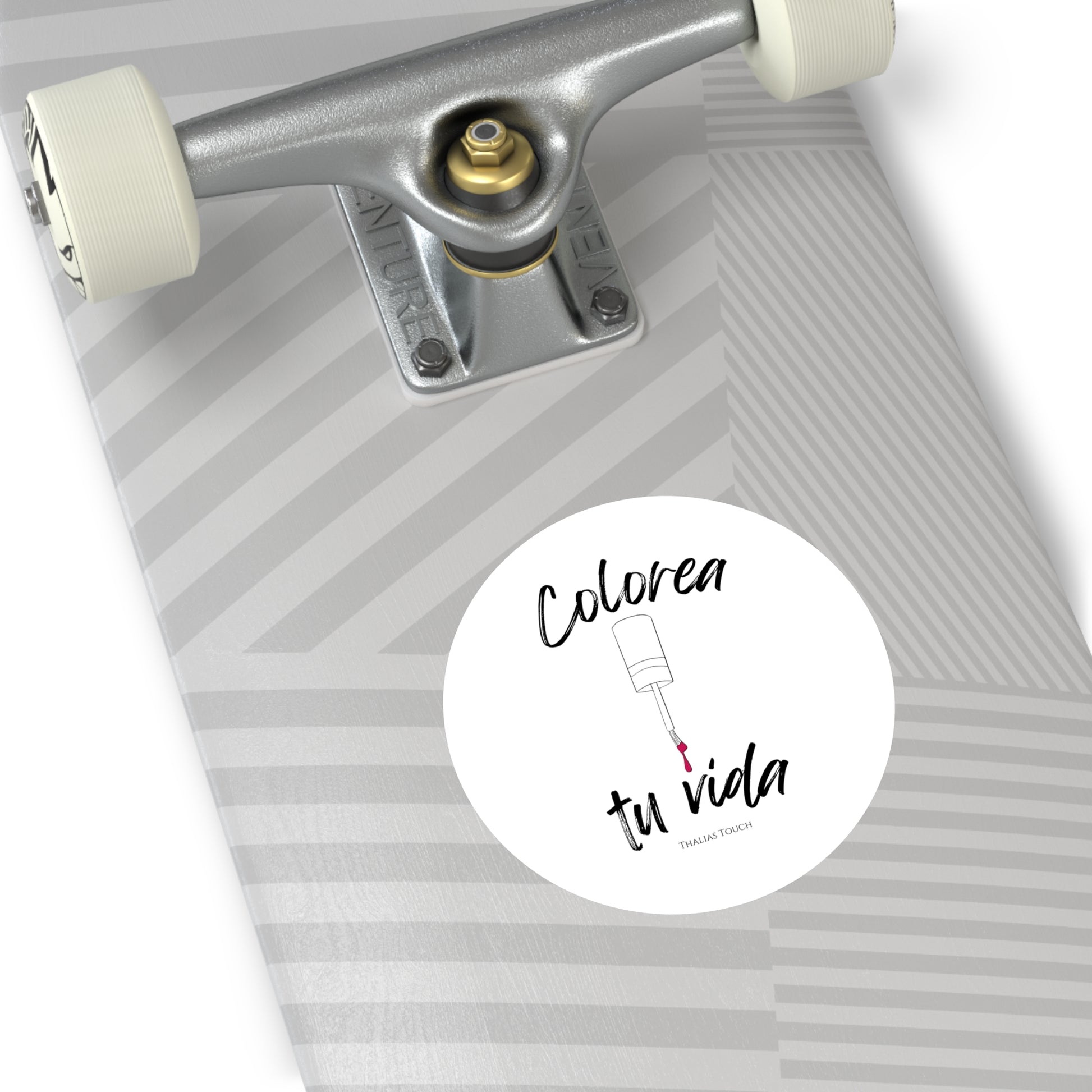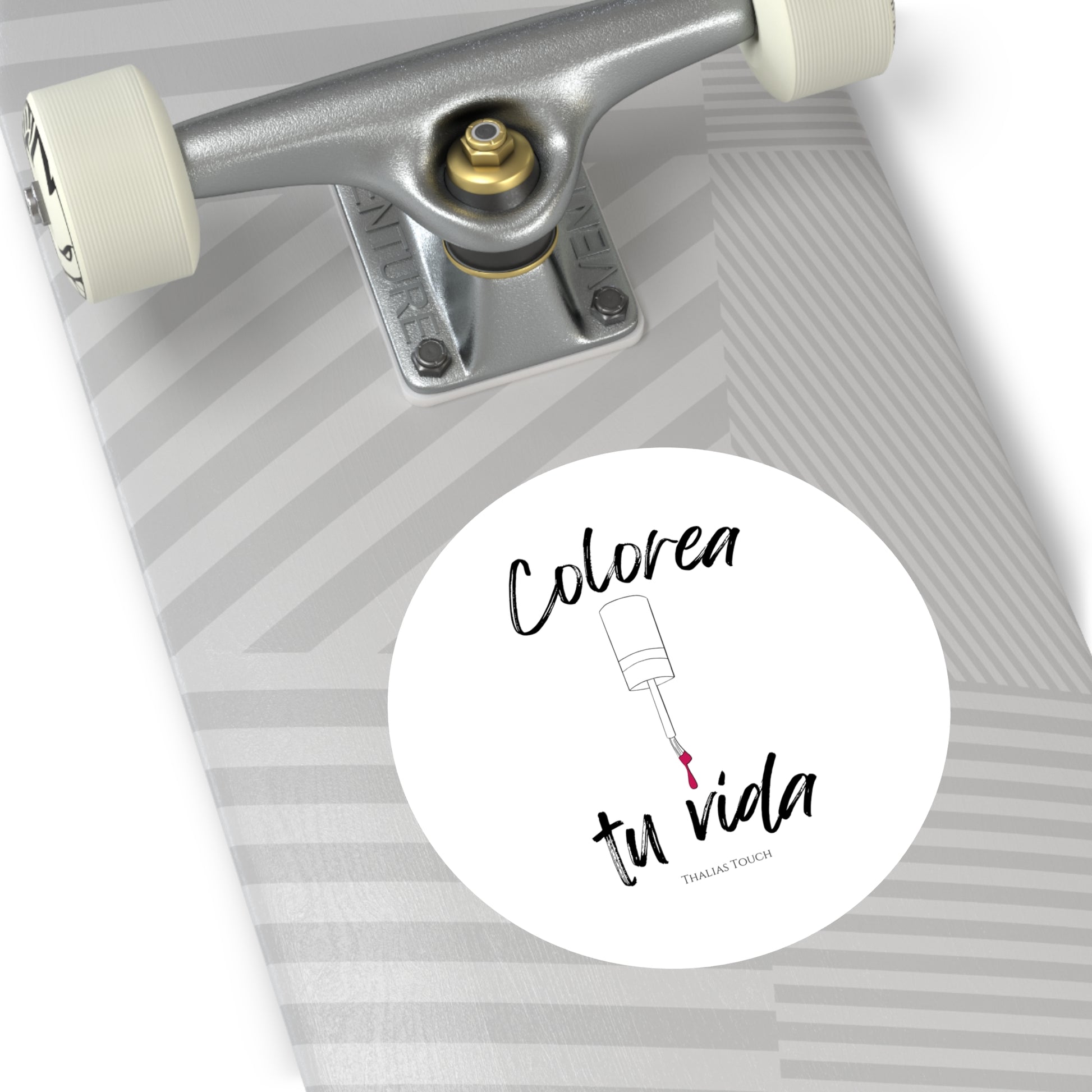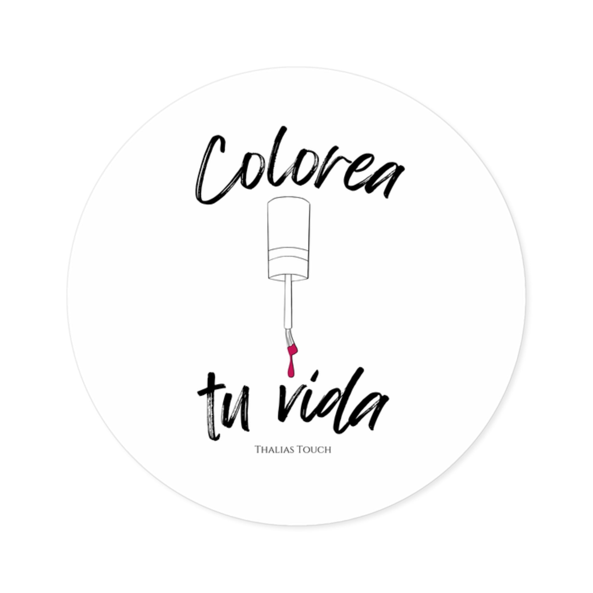 Sticker Redondo, Blanco, Resistente a rasguños y agua, "Colorea tu vida"