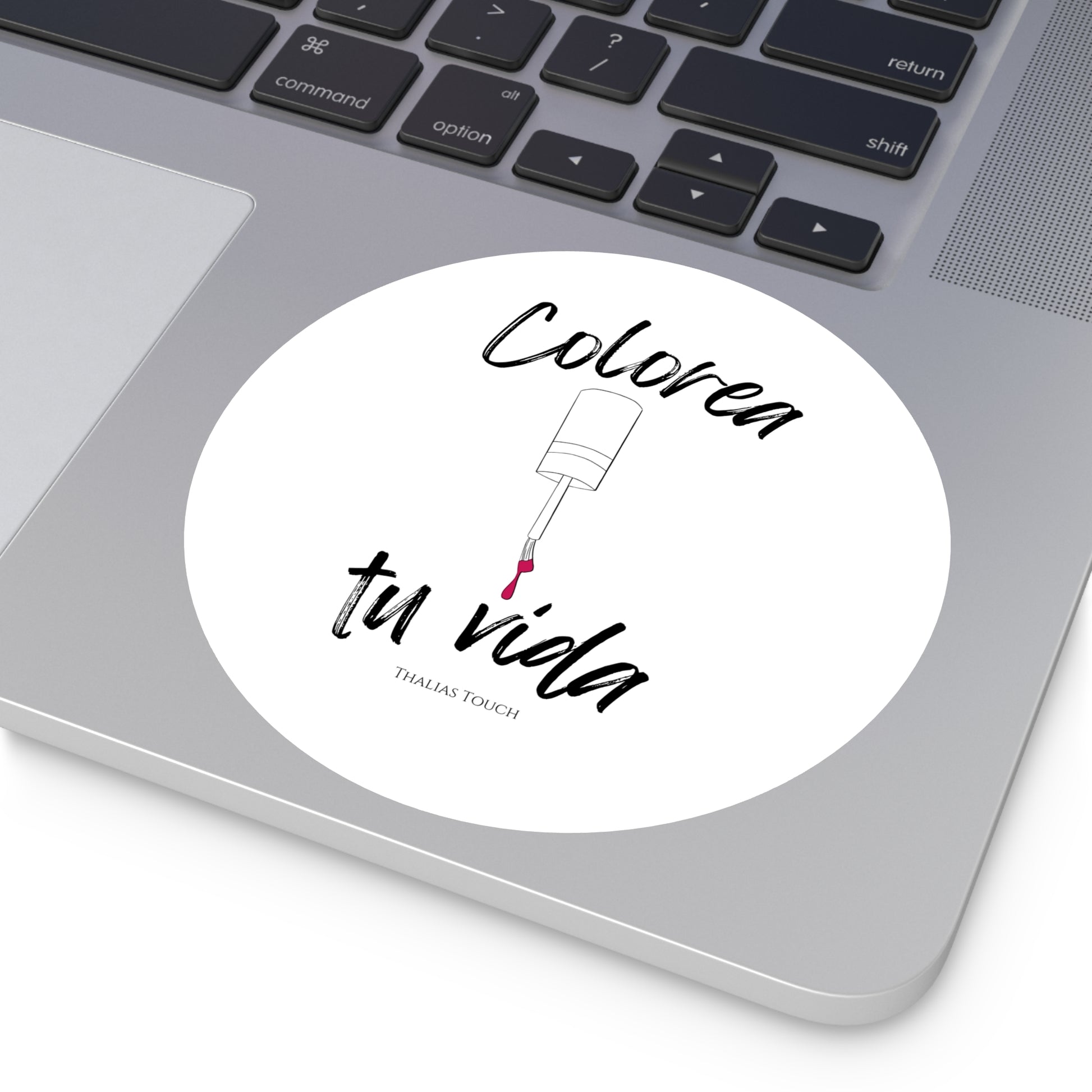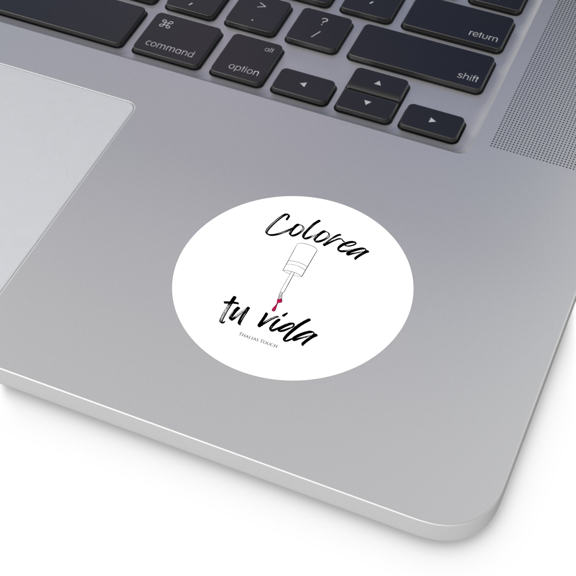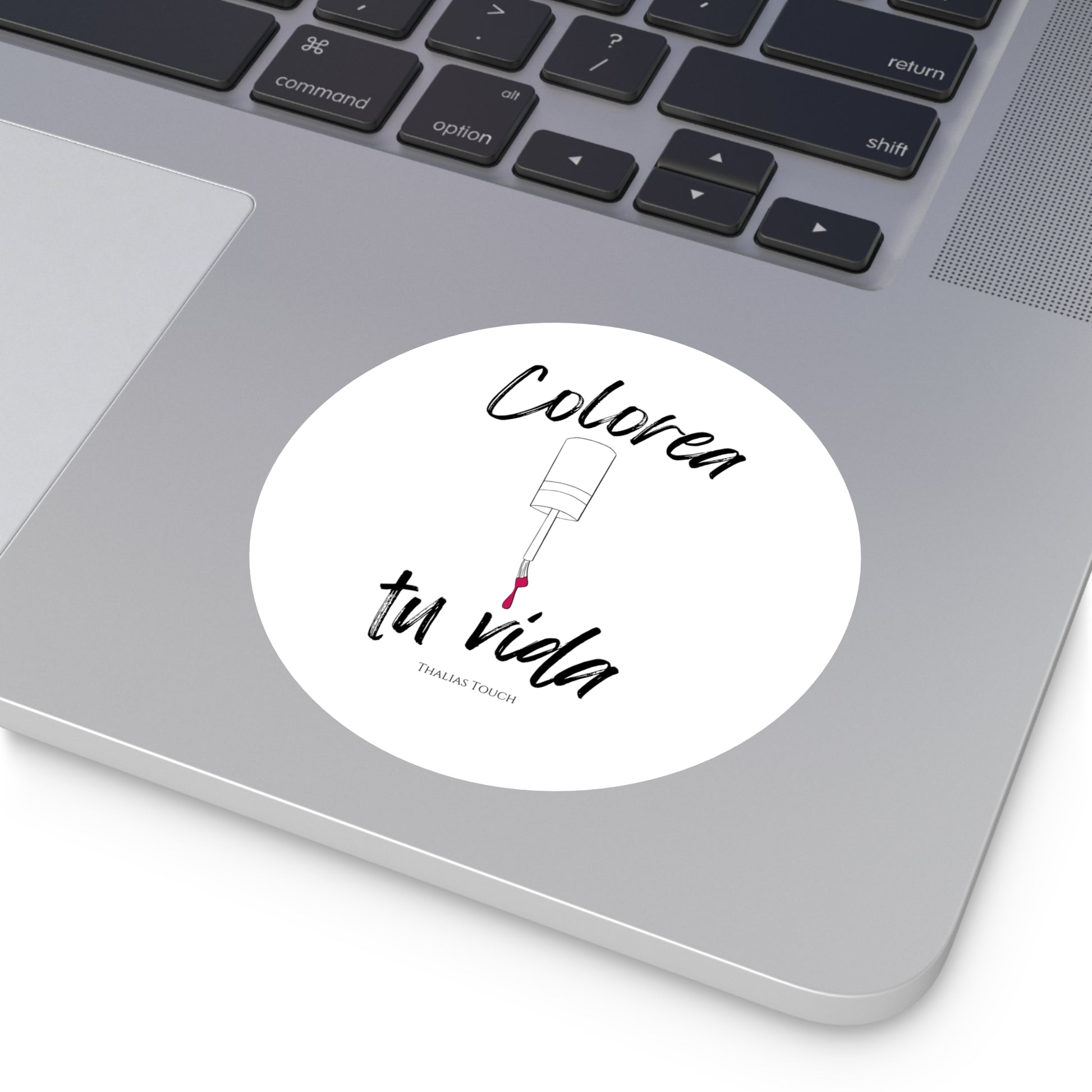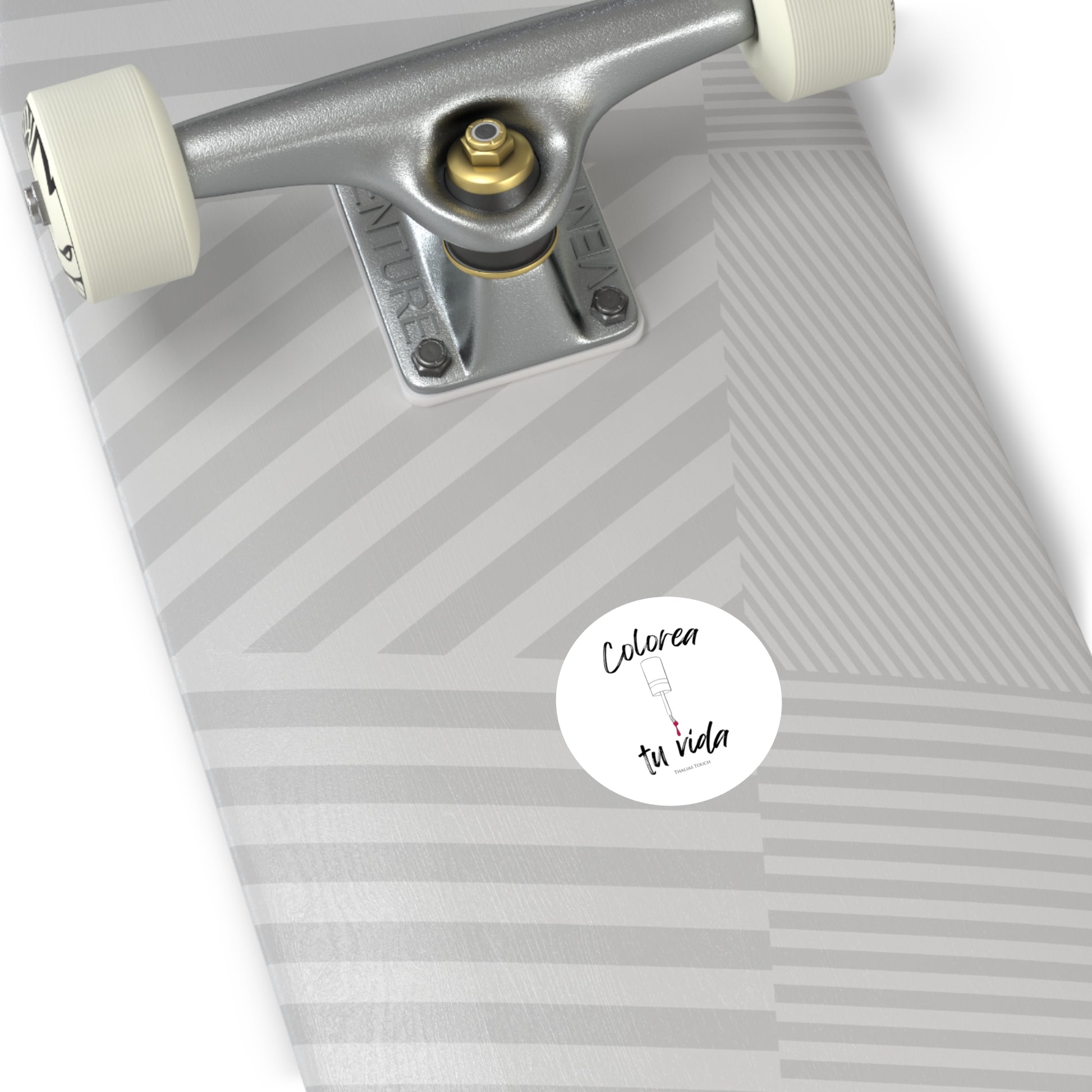 Sticker Redondo, Blanco, Resistente a rasguños y agua, "Colorea tu vida"