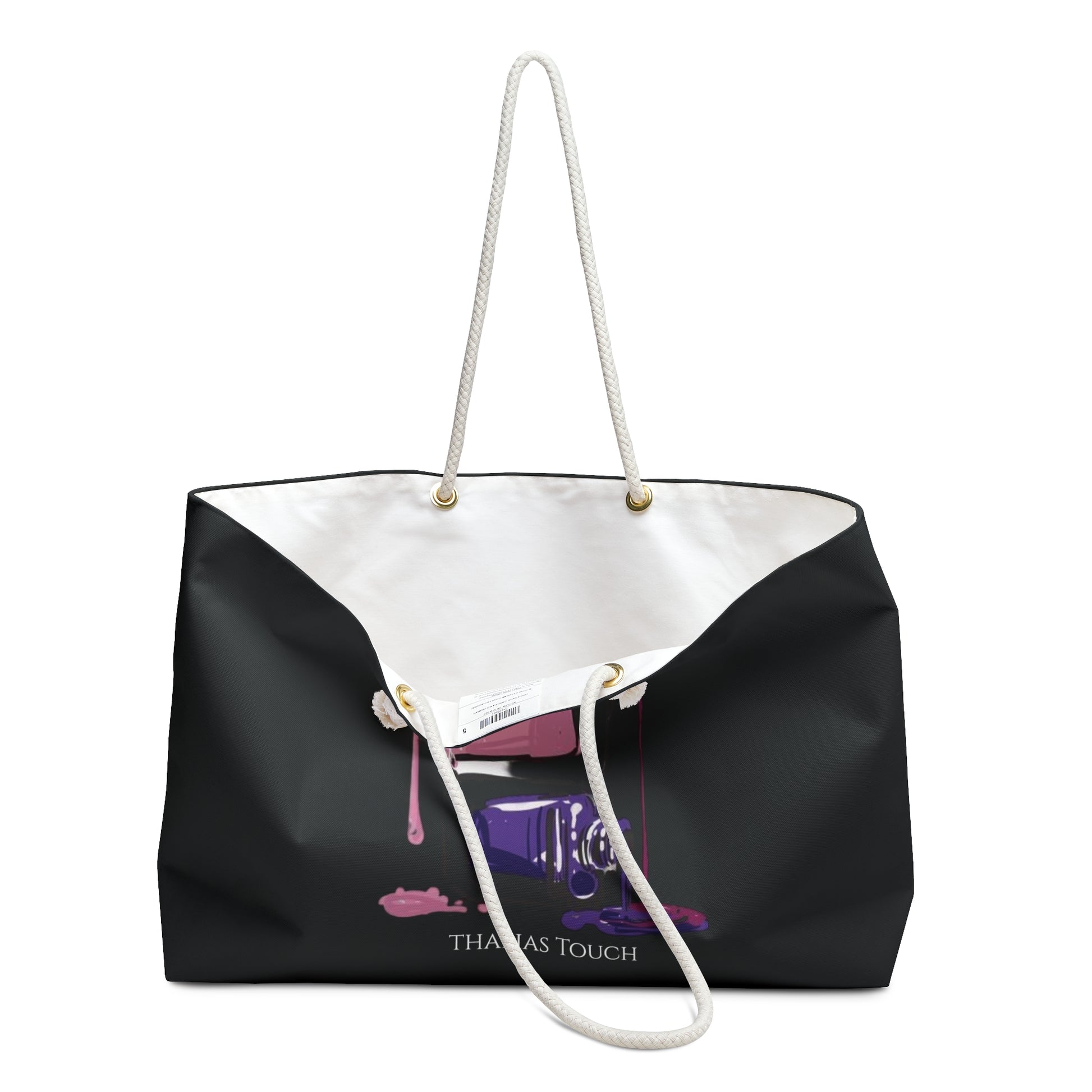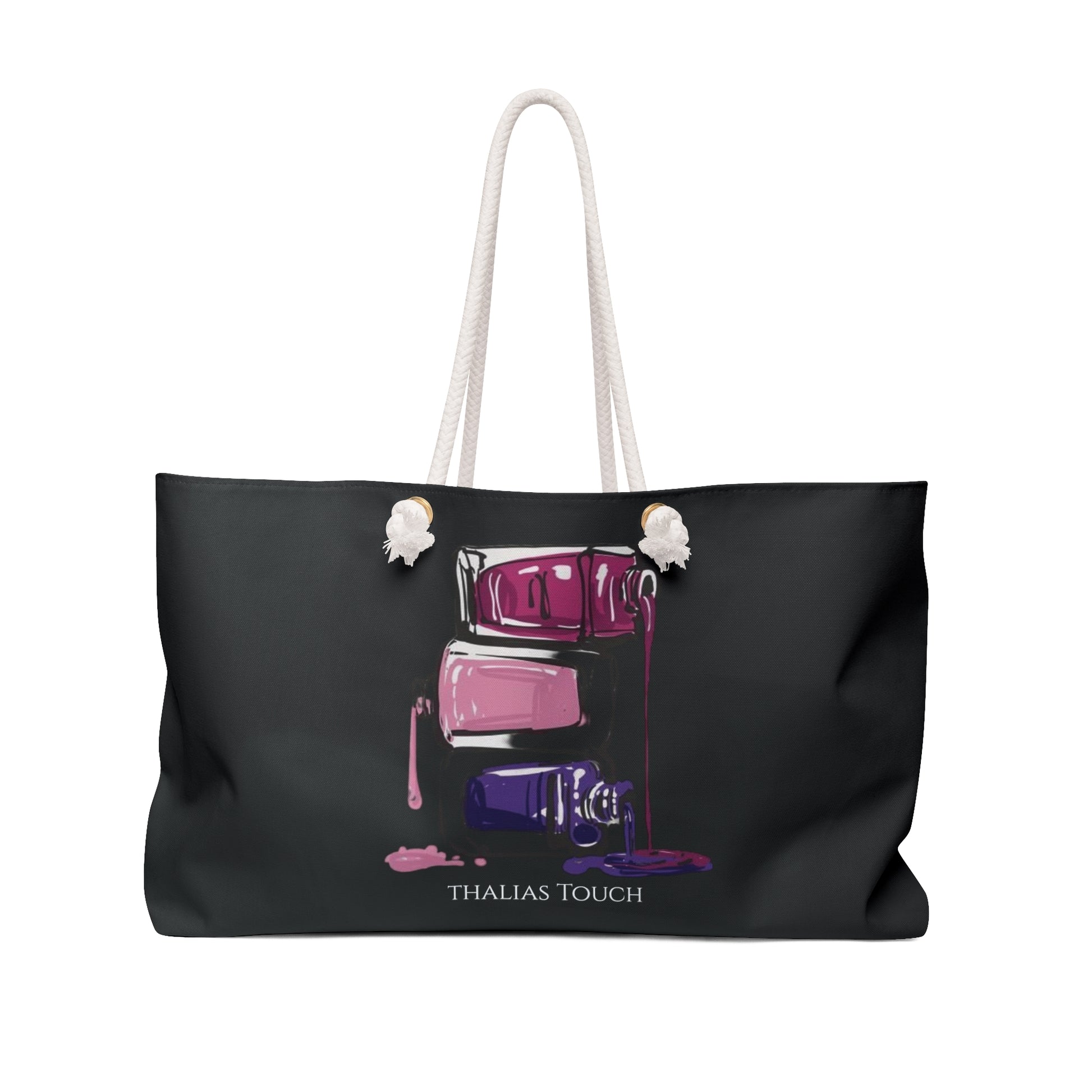 Perfect for a weekend getaway, a day at the beach, or even for storing manicure supplies, our Weekender Tote combines style and functionality. This spacious bag features a wide opening for easy access and thick rope handles for comfortable carrying. With its generous size and durable construction, it's designed to carry all your essentials with ease.